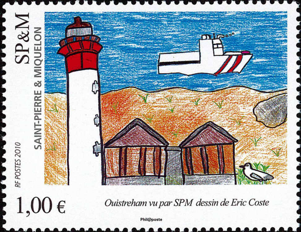 Ouistreham vu par SPM - Dessin d'Eric Coste - Date d'émission : 21 avril 2010 - Référence Yvert et Tellier : 976