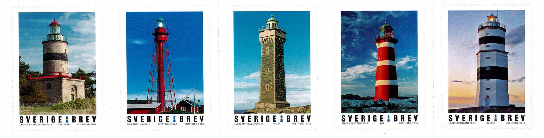 Phares de Brev : Falsterbo - Pite-Rönnskär - Vinga - När - Orskär - Date d'émission : 4 janvier 2018 - Références Yvert et Tellier : 3185 à 3189