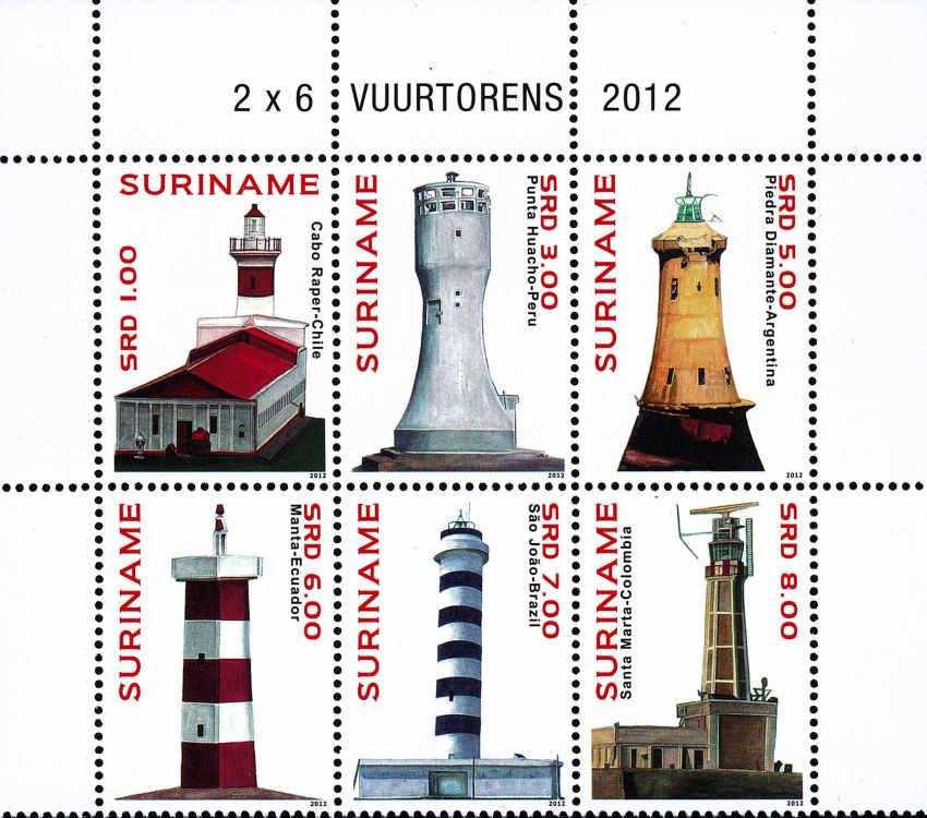 Cabo Raper (Cuba) - Punta Huacho (Pérou) - Piedra Diamante (Argentine) - Manta (Equateur) - Sao Joäo (Brésil) - Santa Marta (Colombie) - Date d'émission : 24 octobre 2012 - Références Yvert et Tellier : 2349A à 2349F