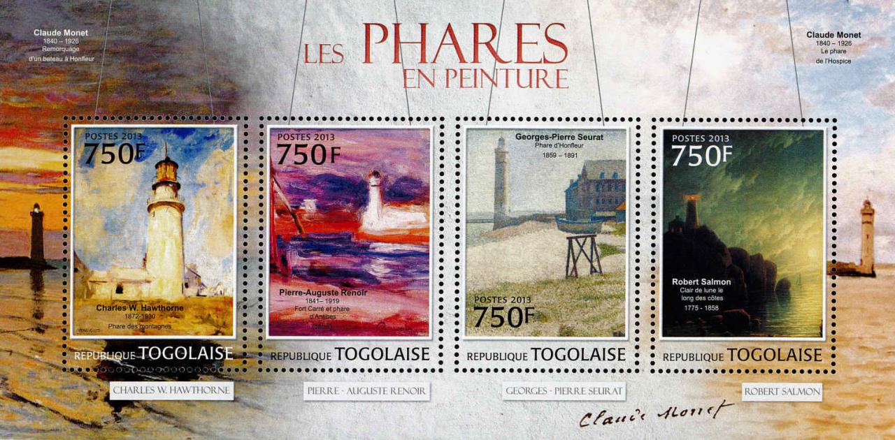 Phare des Montagnes - Antibes - Honfleur - Clair de lune le long des côtes - Date d'émission : 1er janvier 2013 - Références Yvert et Tellier : 3036 à 3039